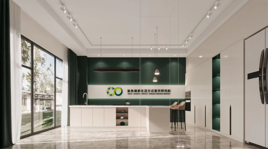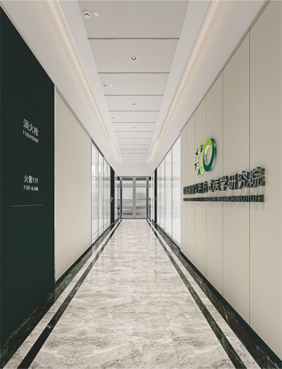 鯊魚健康生活方式醫學研究院位于湘潭昭山,項目總面積2100㎡,共兩層,一層為健康生活方式醫學研究院以及展示接待區,二層為辦公區域。