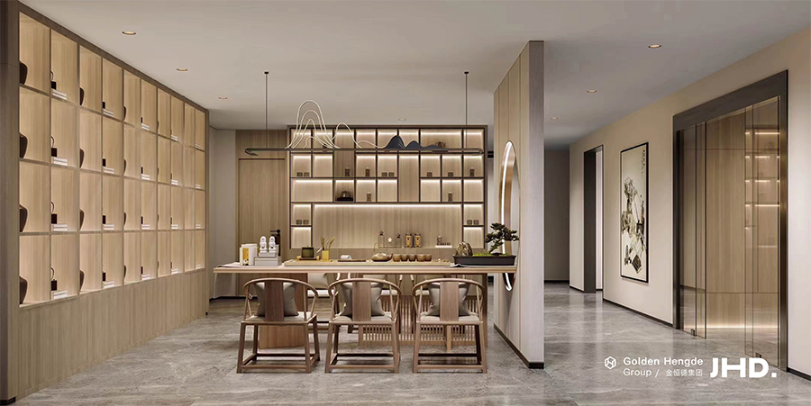 一出電梯廳就能看到清云茶苑的標志,極簡的設計風格讓人輕松,原木的主色調讓人感覺溫暖,通透的玻璃門后面就是一方茶臺,仿佛主人早已恭候良久。步入大廳,能看到設計師精心對空間中每一處角落進行了打磨,豐富的細節處理體現了主人所秉持的樸素質感和靈活美學,鼓勵停留店中的客人們移步異景地收獲更多元的感受,在讀書品茶間,與友談笑風生,虛度一段寧靜的時光亦是我們最真切的空間意愿。