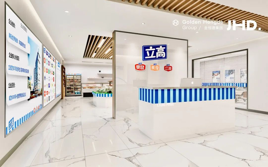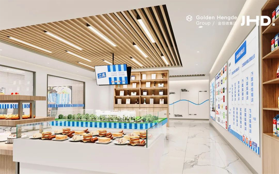 立高食品股份有限公司  ( 簡稱:立高食品 Ligao Foods,股票代碼:300973 )  是一家集烘焙食品原料及冷凍烘焙食品研發、生產、銷售于一體的大型股份制上市企業。公司總部位于廣州,下屬的立高食品、奧昆食品、昊道食品(美煌)業務遍及烘焙食品原料、冷凍烘焙食品及烘焙醬料等領域,經過二十余年的沉淀與積累,立高已成長為廣大客戶信賴的烘焙龍頭企業。2021  年公司營業收入達 28.17億元,同比增長 55.66%。2022年立高集團委托金恒德助力打造中部地區最大的集售展和辦公為一體的體驗中心。