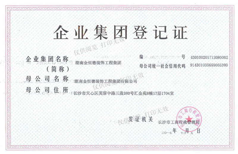 金恒德集團(tuán)登記證