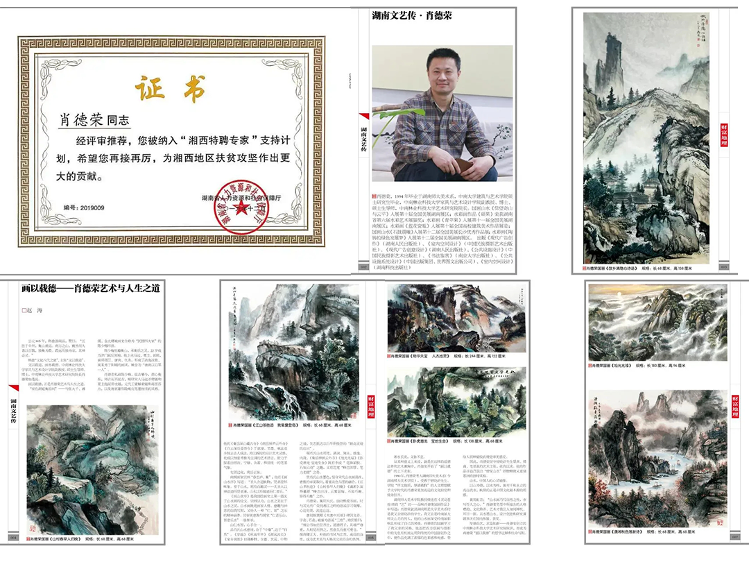 國畫山水《仰望奇山與云平》入展第十屆全國美展湖南展區;水彩畫作品《碩果》榮獲湖南省第六屆水彩藝術展銀獎;水彩畫《青蘋果》入展第十一屆全國美展湖南展區;水彩畫《藍花瓷瓶》入展第十屆全國高校建筑美術作品展覽;國畫山水《石鼓晨曦》入展第十二屆全國美展長沙優秀作品展;水彩畫《陶鑄的綠色發展夢》入展第十二屆全國美展湖南展區。出版《現代廣告創作》(湖南人民出版社)、《室內空間設計》(中國民族攝影藝術出版社)、《現代廣告創意設計》(湖南人民出版社)、《公共設施設計》(中國民族攝影藝術出版社)、《書法鑒賞》(南京大學出版社)、《公共設施系統設計》(中國出版集團、世界圖文出版公司)、《室內空間設計》(湖南科技出版社)