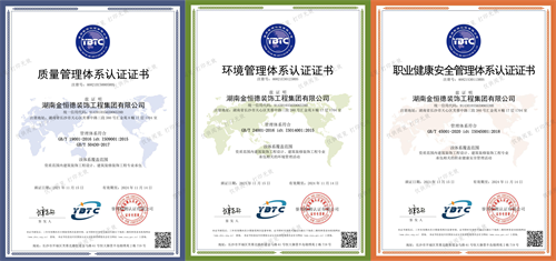 2021年11月份,金恒德集團榮獲ISO質量體系認證證書,標志著金恒德集團在項目設計施工質量、現場管理方面已達到認可標準。
