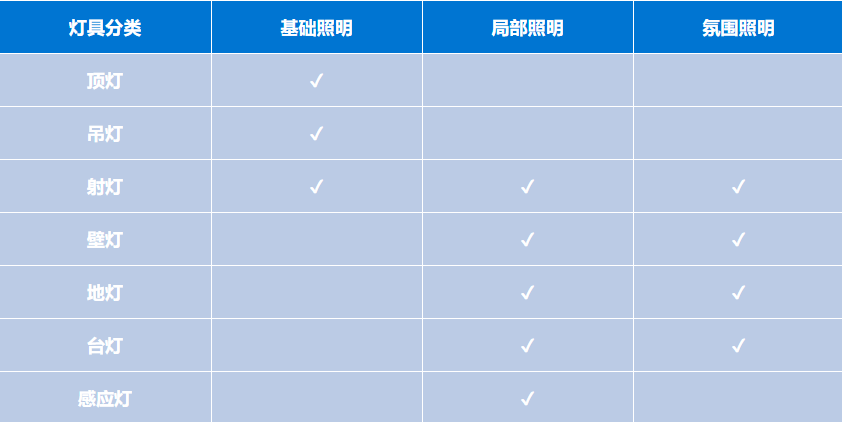 照明主要分為 基礎(chǔ)照明、局部照明、 氛圍照明,合理搭配才能出效果。