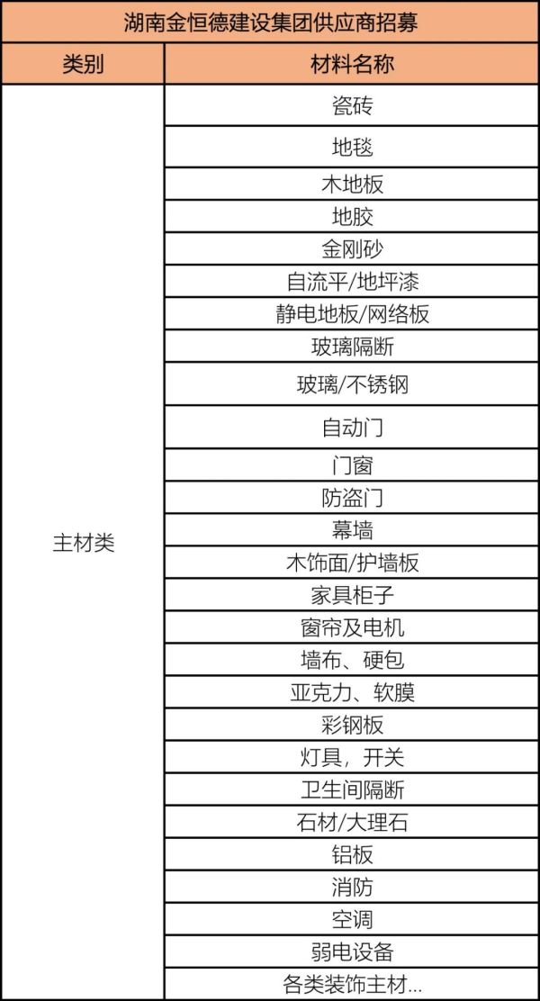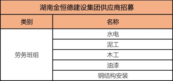 本公告為湖南金恒德建設集團各類供應商招募公告(主材供應商、輔材供應商、勞務班組)